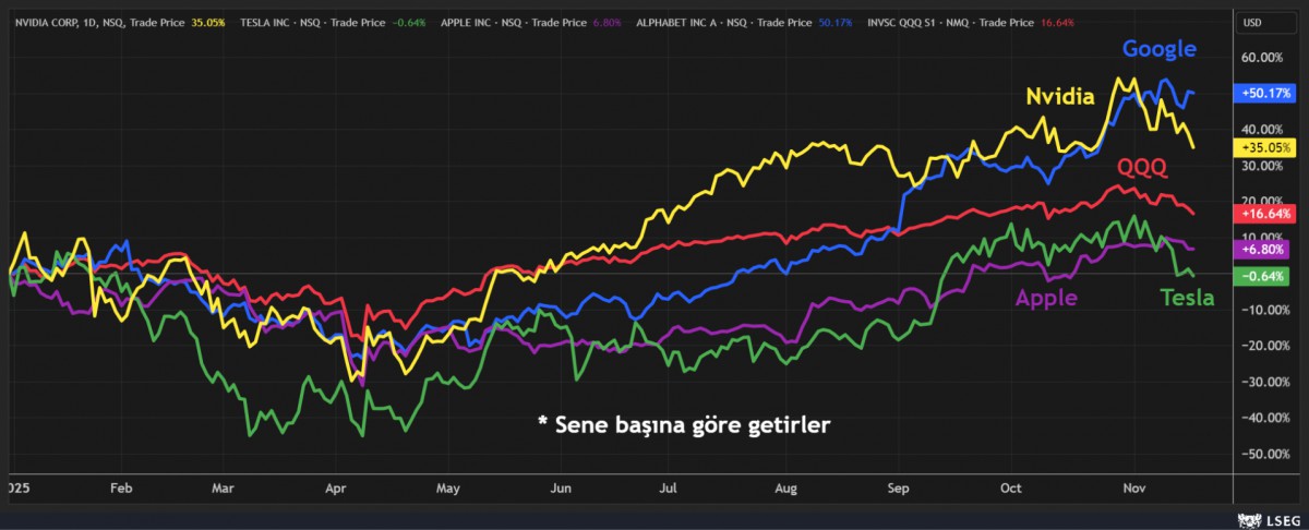 - Gözler Nvidia'nın bilançosunu takip ederken, küresel hisse senedi piyasalarının genel hatları ile baskı altında olduğunun altını çizmek gerekiyor. En büyük 500 şirketin işlem gördüğü S&P500 endeksi aralıksız dört gündür gerilerken, ABD'de açıklanan ilk işsizlik maaşı başvuruları verisi ABD’de işsizlik yardımı alanların sayısının eylül ortasından ekim ortasına kadar belirgin şekilde arttığını göstererek piyasalardaki endişeyi büyüttü. Hükûmetin 1 Ekim’deki kapanmasının ardından gelen ilk veri setinin zayıf sonuçlanırken, gözler perşembe günü gecikmeli olarak açıklanacak tarım dışı istihdam verisine çevrildi. Zayıf bir verinin, Fed’in aralık toplantısında faiz indirimine gitme ihtimalini artıracağına düşünmekle birlikte, merkez bankası içindeki görüş ayrılıkları nedeniyle görünüm hâlâ belirsiz olduğunu da not edelim. Vadeli işlemler şu anda 25 baz puanlık bir indirime yaklaşık %47 olasılık tanıyor.