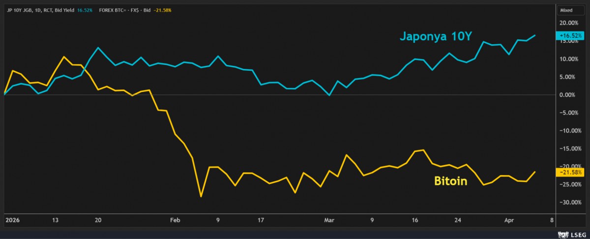 *Bitcoin vs Japonya 10 Yıllık tahvil getirisi (sene başına göre)