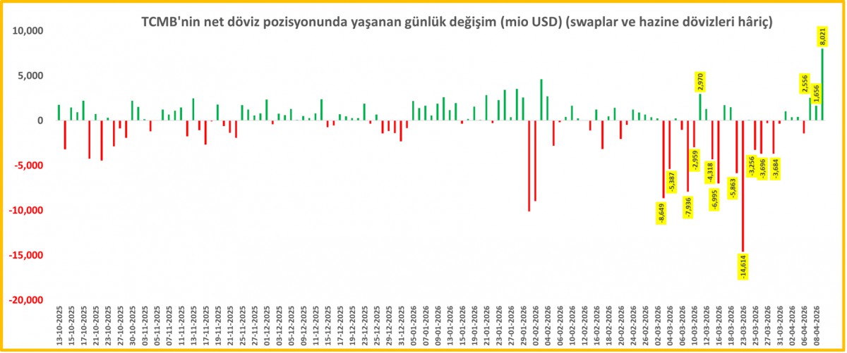 TCMB Net Yabancı Para Pozisyonunda Yaşanan Günlük Değişim