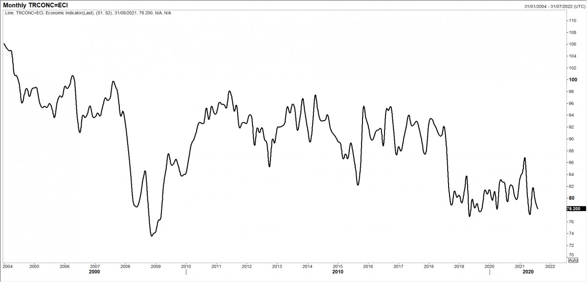 Tüketici güven endeksi, Ağustos ayında bir önceki aya nazaran %1,6 oranında gerileyerek 78,2 oldu. TCMB ile TÜİK işbirliğinde açıklanan bu endeks son 3 ayın en düşüğüne geriledi. Endeksin ana alt kalemlerinde, mevcut dönemde hanenin maddi durumu aylık bazda %5,8 iyileşme kaydederken 12 aylık dönemde genel ekonomik durum beklentisi %9,6 kötüleşti. Tüketiciler geleceğe yönelik pek de umutlu değiller!