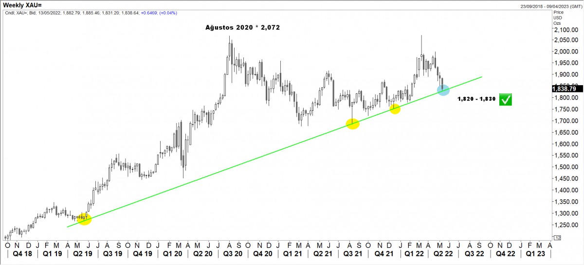 Altının ons fiyatı bu sabah işaret ettiğimiz 1,820 - 1,830 dolar bandına kadar geriledi. Bu seviyeler, 1,815 seviyesine zarar kes yazılarak alım yönünde denenebileceğini düşünüyoruz.