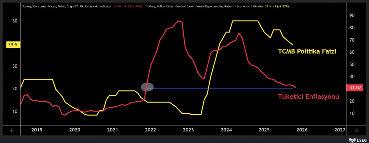 - Daha önce de dile getirdiğimiz üzere, ABD'nin seneye çevirmek zorunda olduğu 6 trilyon dolar büyüklüğünde borcu mümkün olan en düşük faiz ile çevirmek isteyecektir. Öte yandan, Trump tarife savaşlarına soyunurken, doların rekabet avantajı elde ederek zayıf kalmasını, ekonomik faaliyetin de içeride kalarak fabrika çarklarının dönmesini, işletmelerin de ucuz krediye ulaşmasını isteyerek faiz indirimi çağrısını oldukça sert bir tonla yaparken, Fed'in başına gelecek ismin, kuvvetle muhtemel, Hassett'in, bu çağrıya uyacağı beklentisi piyasalarda bir miktar da olsun tedirginlik yaratıyor. Zamanı gelmemiş, ekonomik dengelerin işaret ettiğinin ötesinde faiz indirim hamleleri -hatırlayınız 2021 Türkiye örneği- piyasa aktörlerinin dolardan koşar adım uzaklaşmasını da beraberinde getireceğini düşünüyoruz.