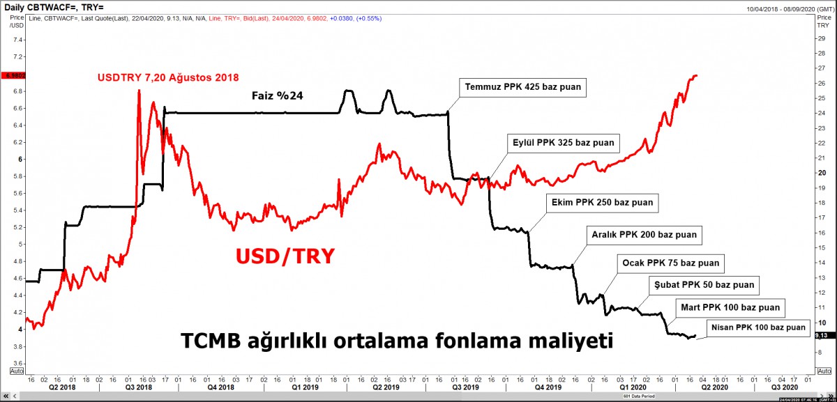 TCMB politika faizinde 100 baz puan indirime gitti. Böylelikle, 1 hafta vadeli repo faiz oranı %8,75 oldu. Piyasa beklentisi 50 baz puan indi. Güney Afrika’nın 100 baz puan indirimi ardından TCMB’nin de böyle bir adım atacağına bizlere daha fazla inanmıştık. Karar ardından yayımlanan kısa politika metninde, ağırlıklı olarak korona virüsünün etkilerine işaret edildiğini gördük. TL'deki değer kaybı enflasyonu olumsuz etkileyen bir faktör olarak nitelendirilirken emtia fiyatlarındaki düşüş ise olumlu bir etken olarak ön plana çıkarıldı.