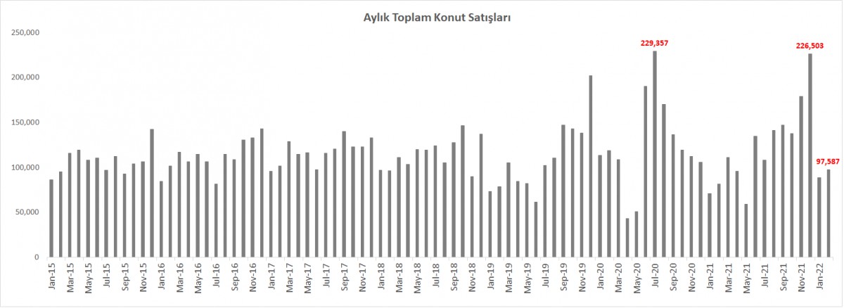 - TÜİK'in verilerine göre konut satışları Şubat ayında 97,587 oldu. Geçen aya göre yükseliş olsa da, Şubat verisi son 9 ayın en düşük ikinci verisi olarak not edildi. Konut verilerinde yaşanan zayıflığı öne çekilen talep ve hayat pahalılığı nedeniyle satın alma gücündeki keskin erozyona bağlıyoruz. Konut yatırımının enflasyonist dönemlerin panzehiri oldıuğu bilsek de, fiyatların çok yükselmesi önümüzdeki dönemde konut satışlarını aşağı yönde baskılamaya devam edebileceğini düşünüyoruz.