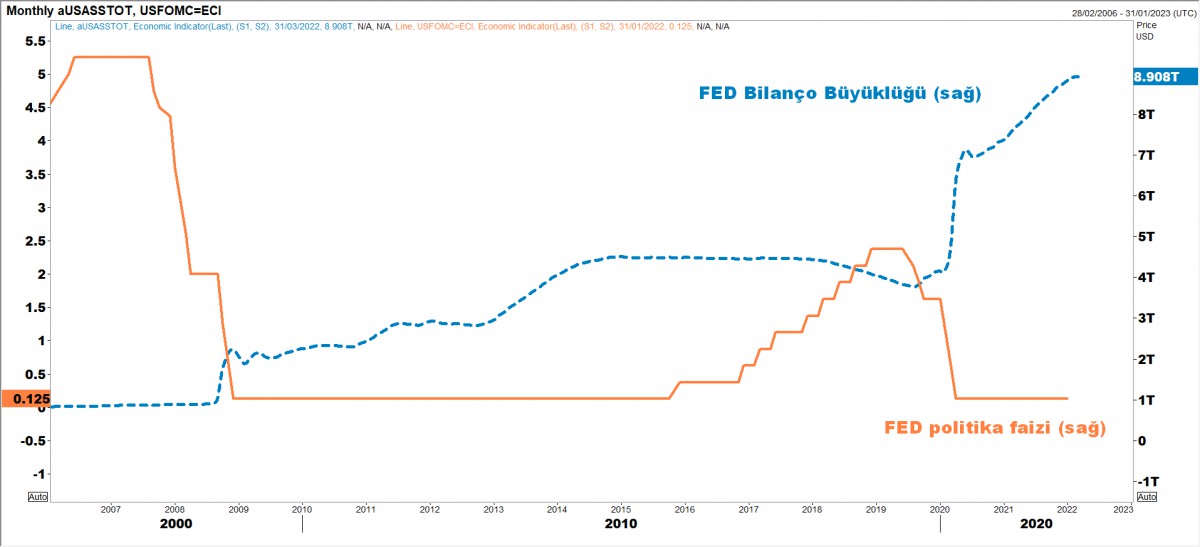 >FED Bilanço Büyüklüğü ve Politika Faizi