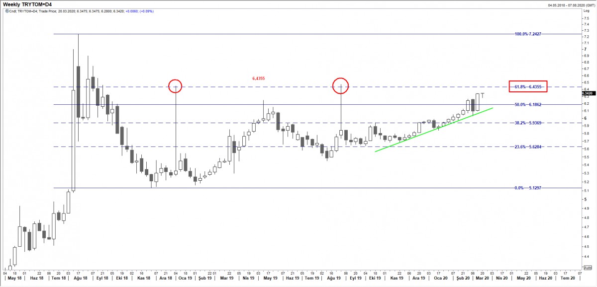 Teknik manada, yükseliş eğilimimim devam etmesi durumunda, USD/TRY kurunda, bir sonraki direnç seviyesi 6,43 seviyesinde bulunuyor.