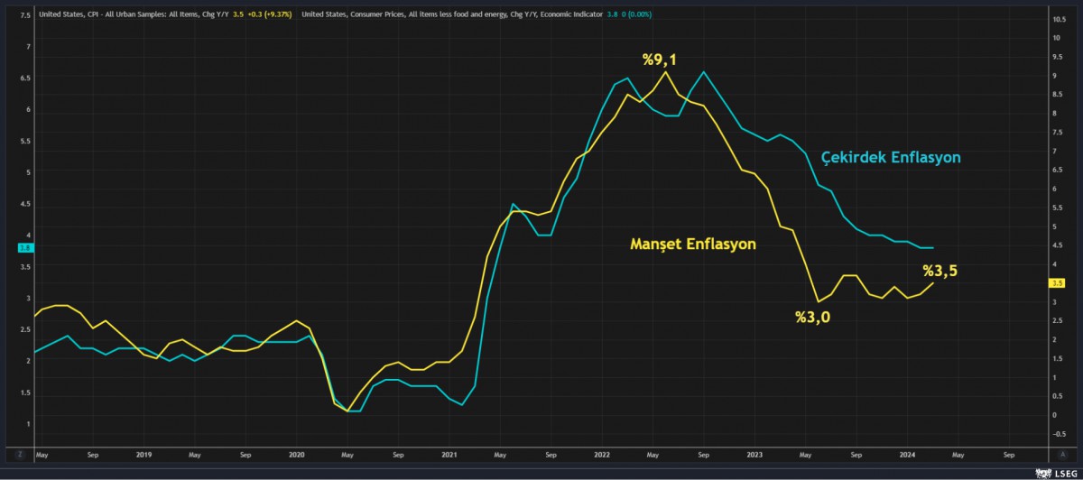 - Özellikle, ABD’de manşet enflasyonun Haziran 2022’de %9,1 seviyesine ulaşarak zirve yapmasın ardından bir sene sonra %3,0 seviyesine kadar gerilemesine rağmen, son 10 aylık dönemde yatay bir görünüm arz eden enflasyonun son açıklanan verilerle göre yeniden yükselişe (%3,5) geçtiğini görüyoruz. ABD’de güçlü tarafta gelmeye devam eden makroekonomik veriler ve bu bağlamda katılık gösteren enflasyonun (beklenildiği ölçüde hızlı düşmeyeceğine yönelik inanışın) da reel faiz getirisini kısıtlamasının etkisiyle altına olan talebin devam etmesini bekliyoruz.