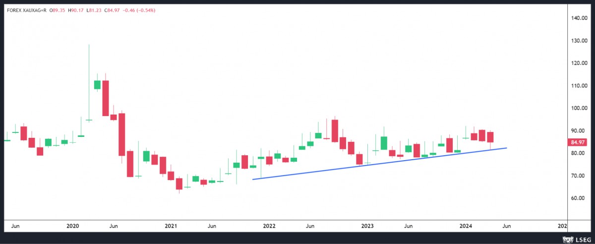 1 ons altın almak için kaç ons gümüş vermek gerektiğini gösteren rasyonun gümüş lehine dönmesi için 81 seviyesinin altında haftalık bir kapanış görmemiz gerekiyor.