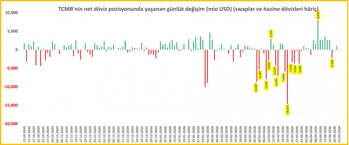 *TCMB Net Yabancı Pozisyonunda Yaşanan Günlük Değişim