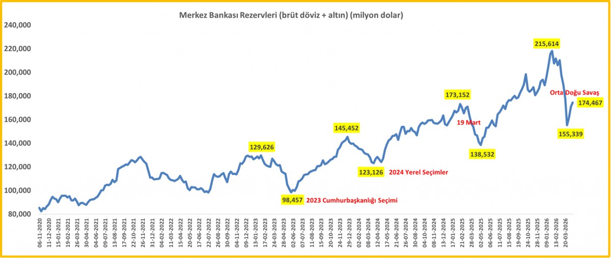 *TCMB Brüt Döviz ve Altın Rezervleri