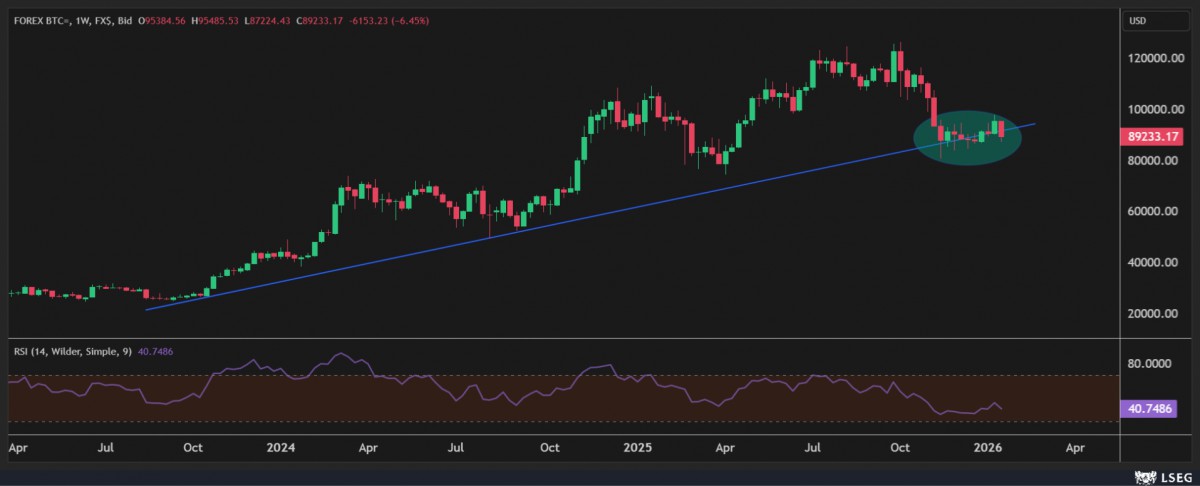 - ABD borsaları haftanın son iş gününü göreceli olarak yatay tamamlarken, yeni gün başlangıcında, Asya cephesine büyük bir ayrışmanın hâkim olduğunu görüyoruz. Yen'in değer kazanmasının ihracat odaklı Japonya ekonomisine yaramayacağı beklentisiyle gösterge endeks Tokyo borsası %2 gerilerken, diğer Asya borsalarında ise küçük de olsa yeşil rengin hâkim olduğunu görüyoruz. Kripto cenahında ise amiral gemisi bitcoin için 'keyifsiz' seyrin korunduğunu da not etmemiz gerekiyor. Bitcoin'in 88-90bin dolar aralığından bir türlü kalıcı olarak uzaklaşamaması, öte yandan, yatırımcı tercihinin kıymetli madenlere kaydığı gerçeğinden de hareketle, daha aşağı seviyelerin görebileceğini düşünüyoruz (bakınız grafikler).