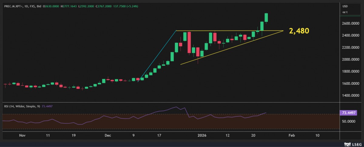 - İçinden geçtiğimiz süper emtia döngüsünde, gümüş pozisyonlarımızı 95 doların kıyısından realize etmemiz ardından, gözümüz platin cephesine çevirdik. Geçen hafta başında kaleme aldığımız raporumuzda platin için ön plana çıkardığımız 2,480 dolar seviyesini aşmasıyla, haftanın son iş günü ölçülü miktarda uzun pozisyon açtık. Mevcut ekosistemde ya da tekrar olmayacaksa içinden bulunduğumuz süper emtia döngüsünde, periyodik tabloda yer alan her şeye alıcı gözüyle bakmak gerektiğini bir kez daha düşünürken, özellikle, altının portföylerde yer almasının yapısal bir zorunluluk hâline geldiğini düşünüyoruz. Hemen hemen her enstrümanın dolar ile fiyatlandığı dünyamızda, doların artık sağlıklı bir terazi görevi üstlenmediğini, paydanın bilinçli bir şekilde değer kaybedilmeye zorlandığı için payın da (örnek XAU/USD) yükselmek zorunda olduğunu düşünüyoruz. Zengin olmaktan ziyade, servetin değerini korumak adına büyük resimde yaşanan değişimi ıskalamamak gerektiğini düşünüyoruz. Özellikle, Davos’ta tarihî bir konuşma yapan Trump'ın, kanaatimce yeni dünya düzenini resmî mânâda ilan ettiğinin altını kalınca çizmemiz gerekiyor!