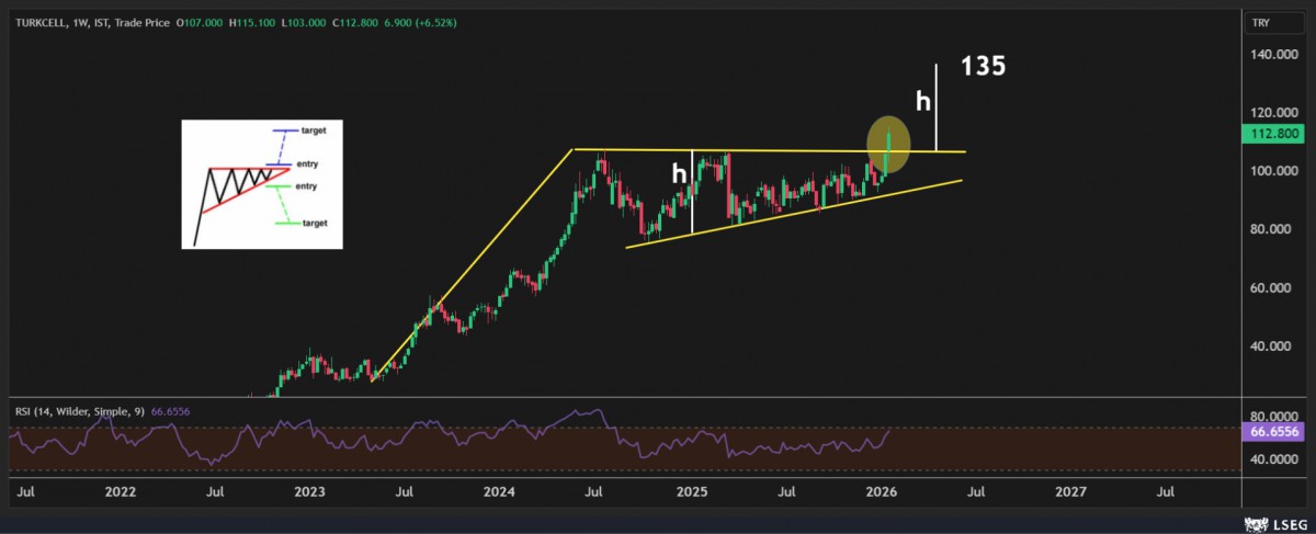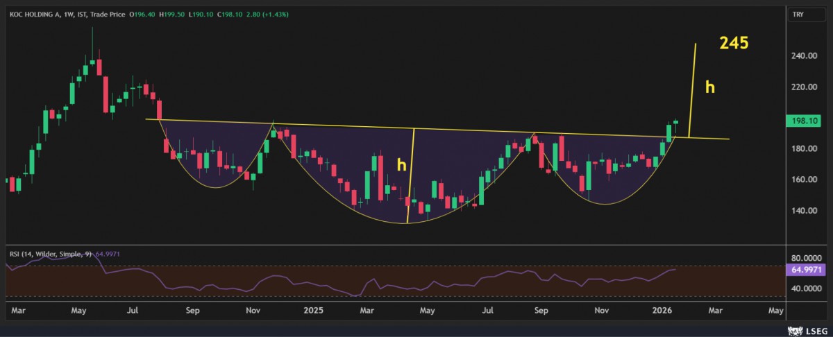 - 2026 yılını enflasyonun belini bükmek içi belki de TCMB açısından son sene olarak görüyoruz. Akabinde seçim sathına gireceğimizi unutmamak gerekiyor. Petrol fiyatlarının destekleyici duruşu ve hikâyesi olan gelişmekte olan ülkelere yönelik yabancı ilgisi ile olumlu havanın genel ruhunun pek de bozulmayacağını düşünüyoruz. USDTRY kuru otoritenin kontrolünde 43,38 seviyelerine yükselirken, hisse senetlerine olan ilginin ise korunduğunu söylememiz gerekiyor. Borsa İstanbul ana endeksi haftanın son iş gününü %1,1 yükselişle tamamlarken, lokomotif bankacılık endeksi ise %2 yükseliş kaydetti. 2026 yılında ana endeks ve bankacılık endeksinin sırası ile %15,50 ve %9,50 yükseldiğini not edelim. Portföylerde bankacılık hisseleri yanına (biz Akbank'ı beğeniyoruz), Koç Holding, Turkcell ve THY'yi de yazıyoruz (bakınız grafikler). CDS risk primi ise 216 baz puan civarında yatay bir seyir izlerken, 2 yıl vadeli tahvilin bileşik faizinin ise %34,77 seviyesine geriledi. Her ne kadar ocak enflasyonunun yüksek geleceğini anlasak da, TCMB'nin bununla savaşmak isteyeceğine işaret eden kararlı duruşu ardından yılın en azından ilk yarısına yönelik TL varlıklara yönelik olumlu tonumuzu korumaya devam edeceğiz.