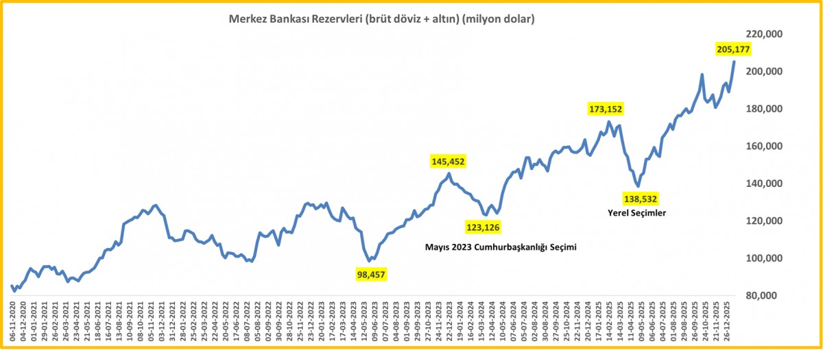 *TCMB Brüt Döviz ve Altın Rezervleri