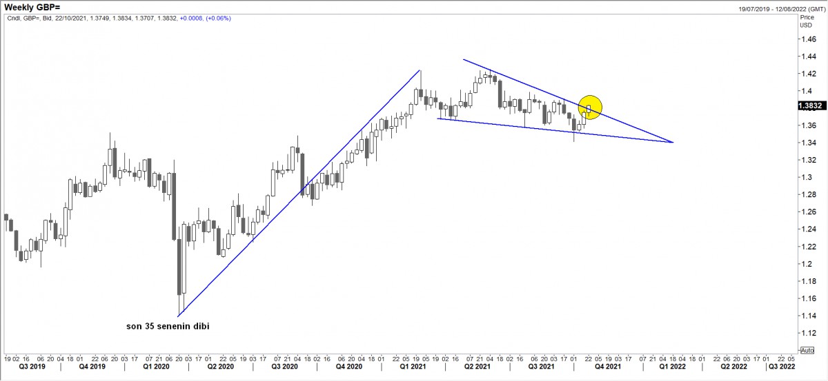 İngiltere'nin faiz artıracak ilk ülke olacağı beklentisi 2 yıllık tahvil faizlerini son 2,5 senenin zirvesine taşıdı. Bu bağlamda GBPUSD paritesi de 1,3830 seviyesine varan bir yükseliş kaydetti. Geçen hafta 1,37 seviyesinin diplerinden aldığımız GBPUSD uzun pozisyonlarımızı, haftalık kapanışı görerek güçlendirmek istiyoruz.